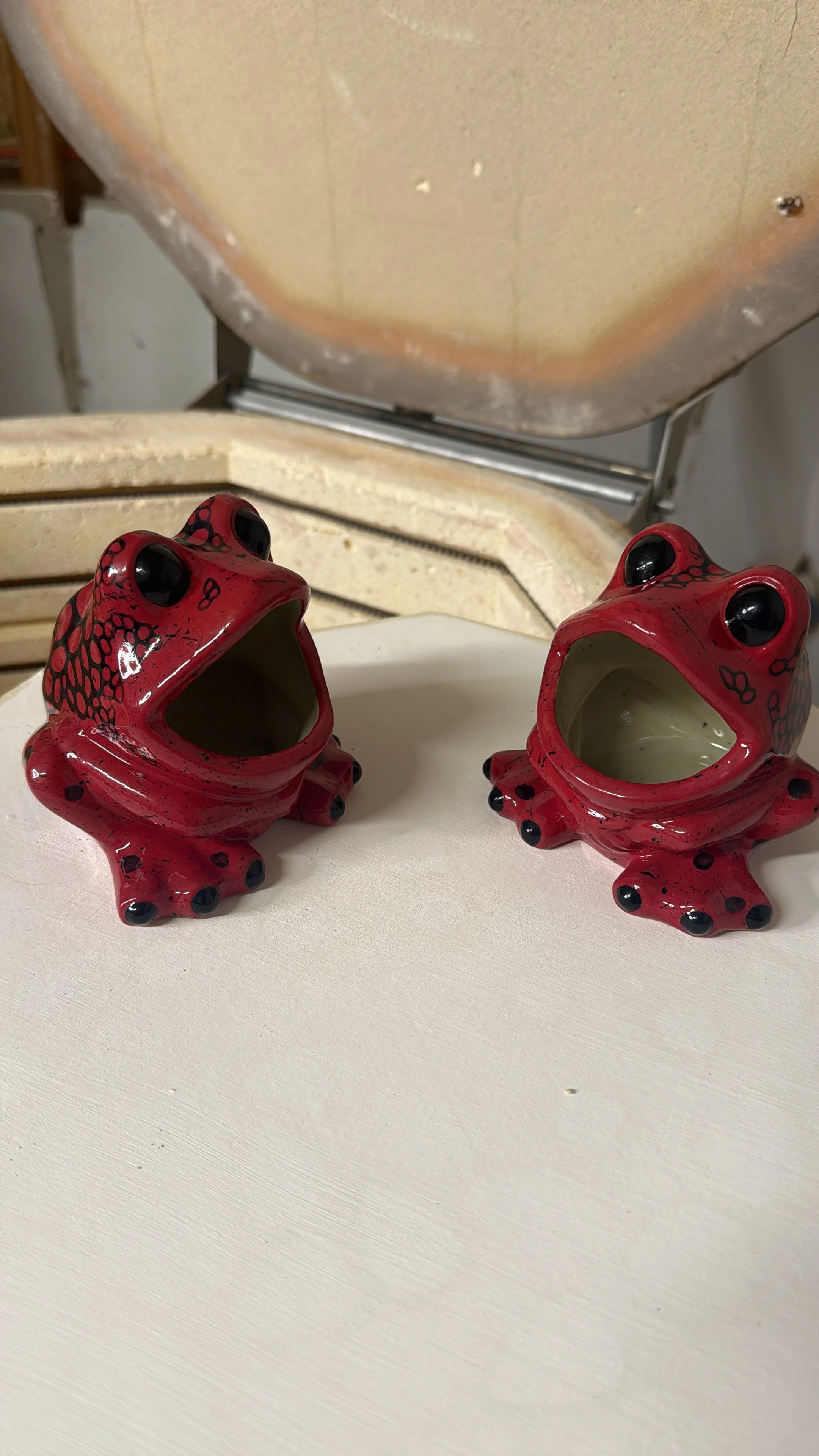 My Dart Frogs are inspired by real varieties of dart frog, and each is painted with its own unique pattern.